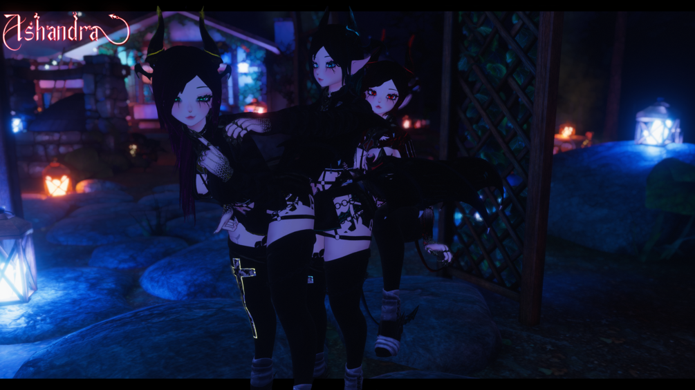 ✧Multiples clothes. - Bra, Bodysuit, Choker, Claw, Earrings, Wings, Hips wings, Horns, Thighs highs, Neck piece, Covers, Rings, Underwear, Puffer top, Skirt, straps, Tail, Jacket. ✦AudioLink. ✦ A LOT of FX, fire circle, fire hands, fire eyes, disappear, heart grasp, energy drain, mist, aura. ✧Comes with extra textures for your needs and plenty of masks for easy editing. ✧EVERYTHING can be dissolved. ✧Comes with a SPS version and without. ✦95% of avatar assets are from scratch. ✧Grabbable features // Skirt can be held down and disappear, Jacket can be removed.. thighs can be held down and underwear can be pushed to the side.